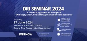 JULY 21 – 22 2025 Aligned with ASEAN’s vision of building a resilient community with enhanced capacity and capability to adapt and respond to social and economic vulnerabilities, disasters, climate change as well as emerging threats and challenges. With the support of DRI International and its global entities, DRI Malaysia will organize the DRI ASEAN […]